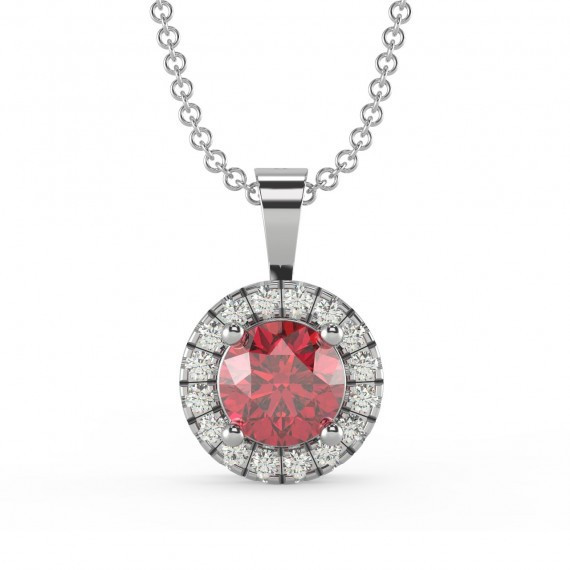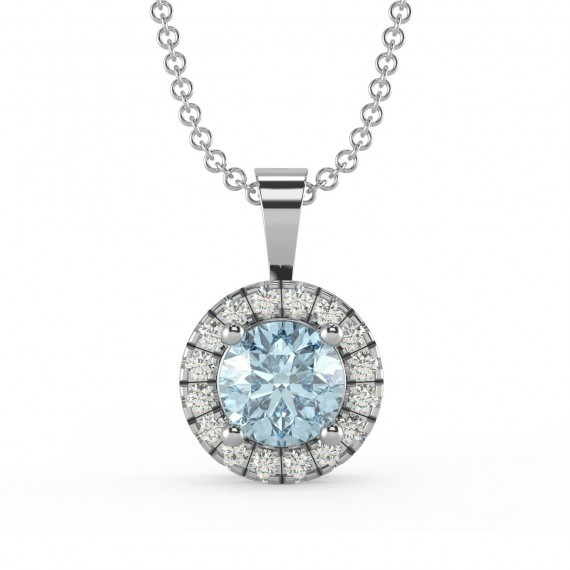 0.50ct Aquamarine, Ruby, Emerald, Peridot And Diamond Halo Pendant In White Gold