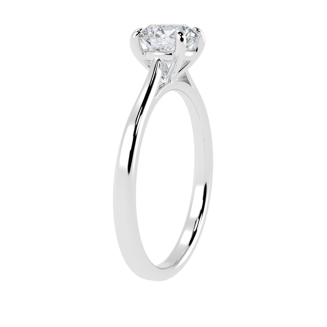 The GIA solitaire ring features Four claws, crafted with clean, crisp attention to detail. The Solitaire is simplistic in form, with a 4 claw setting that allows the diamond to take center stage, encouraging the utmost light play to produce enthralling sparkle. This wed-fit design is crafted to sit flush alongside a wedding ring.